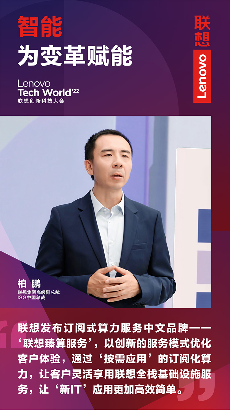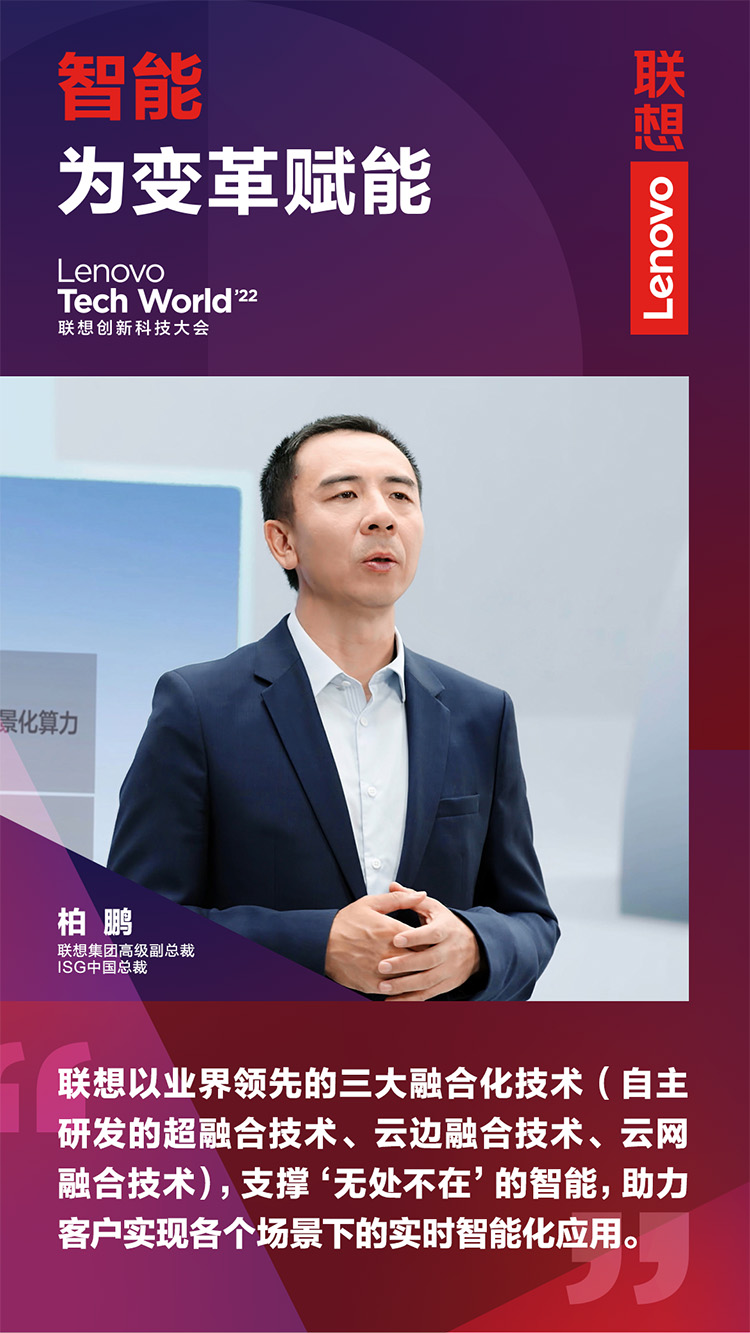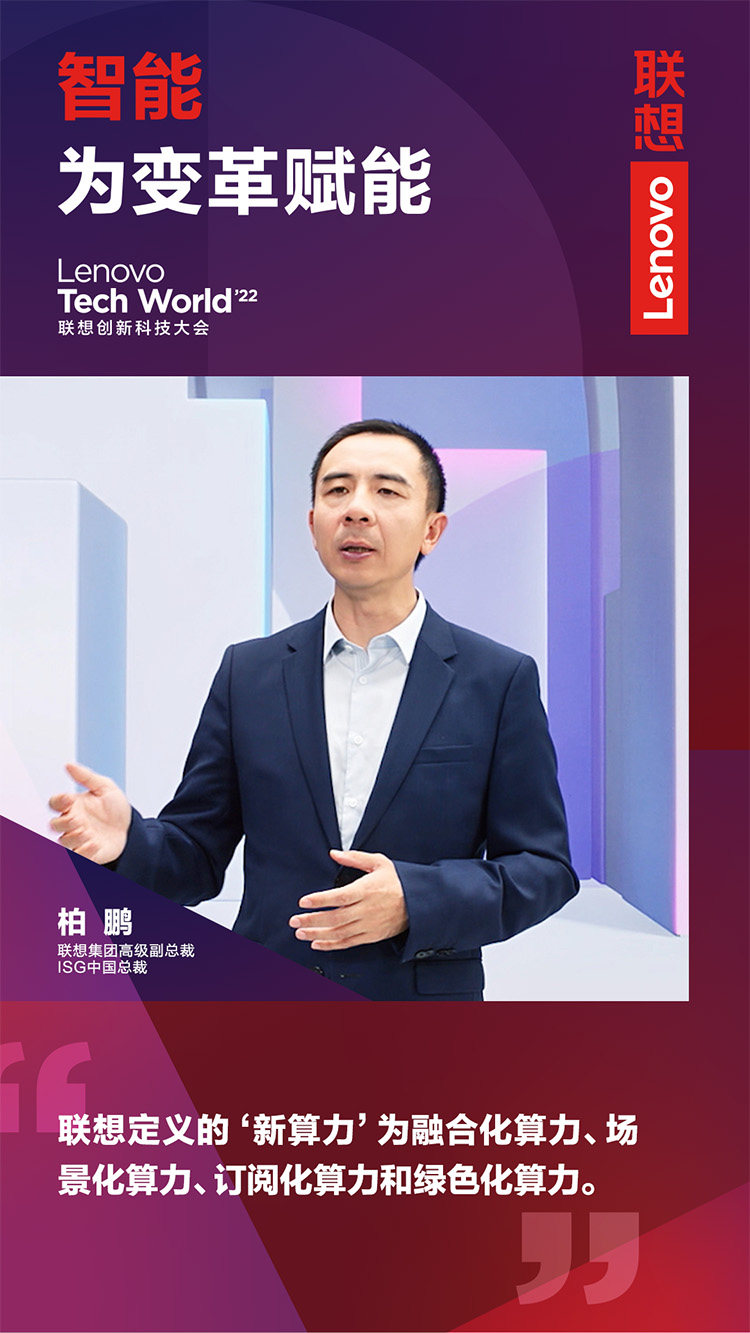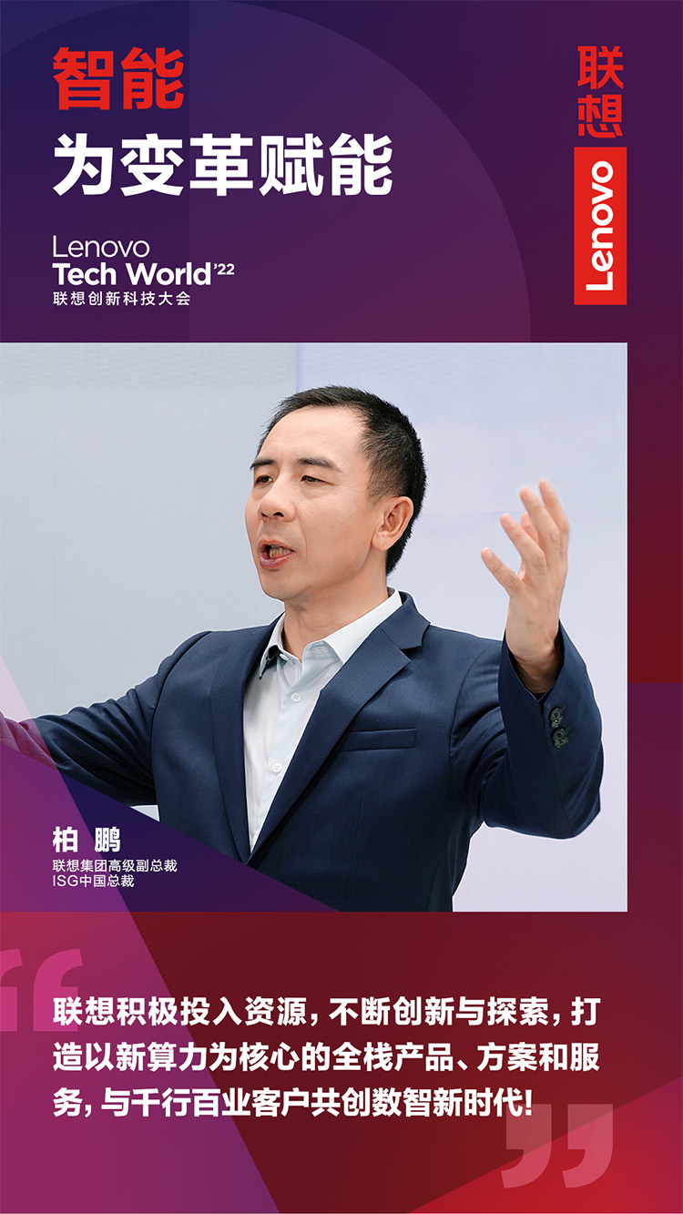 11月9日,以“智能,為變革賦能”為主題的2022聯(lián)想創(chuàng)新科技大會(Lenovo Tech World)成功舉辦。主論壇上,聯(lián)想集團(tuán)高級副總裁、ISG中國總裁柏鵬發(fā)表《新算力,創(chuàng)造數(shù)智新時(shí)代》主題演講。